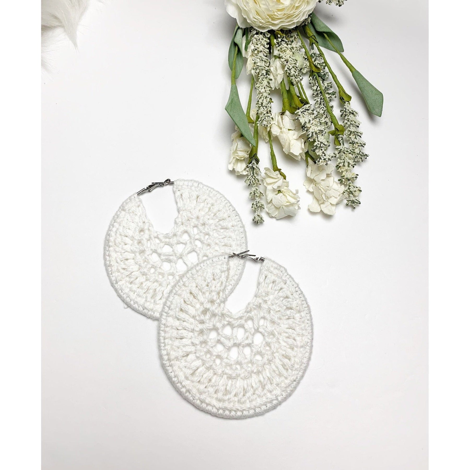 Upgrade your style with our exquisite 100% cotton crochet hoops. Crafted with attention to detail, these lightweight and lead-free 3.5-inch hoops are designed to make a bold statement while effortlessly complementing any outfit. Embrace the perfect blend of comfort and sophistication with this chic accessory, adding a touch of elegance to your look. Elevate your fashion game and let your unique sense of style shine through.